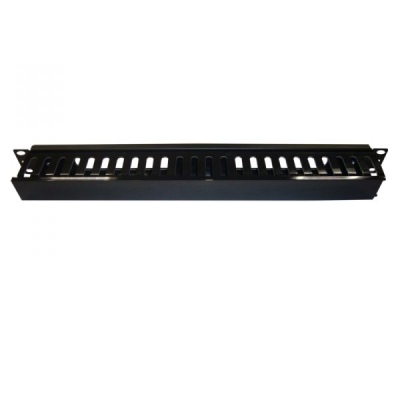 Кабельный органайзер 19", 1U, металлический, с пласт. крышкой, пласт. кольца, черный "SB"